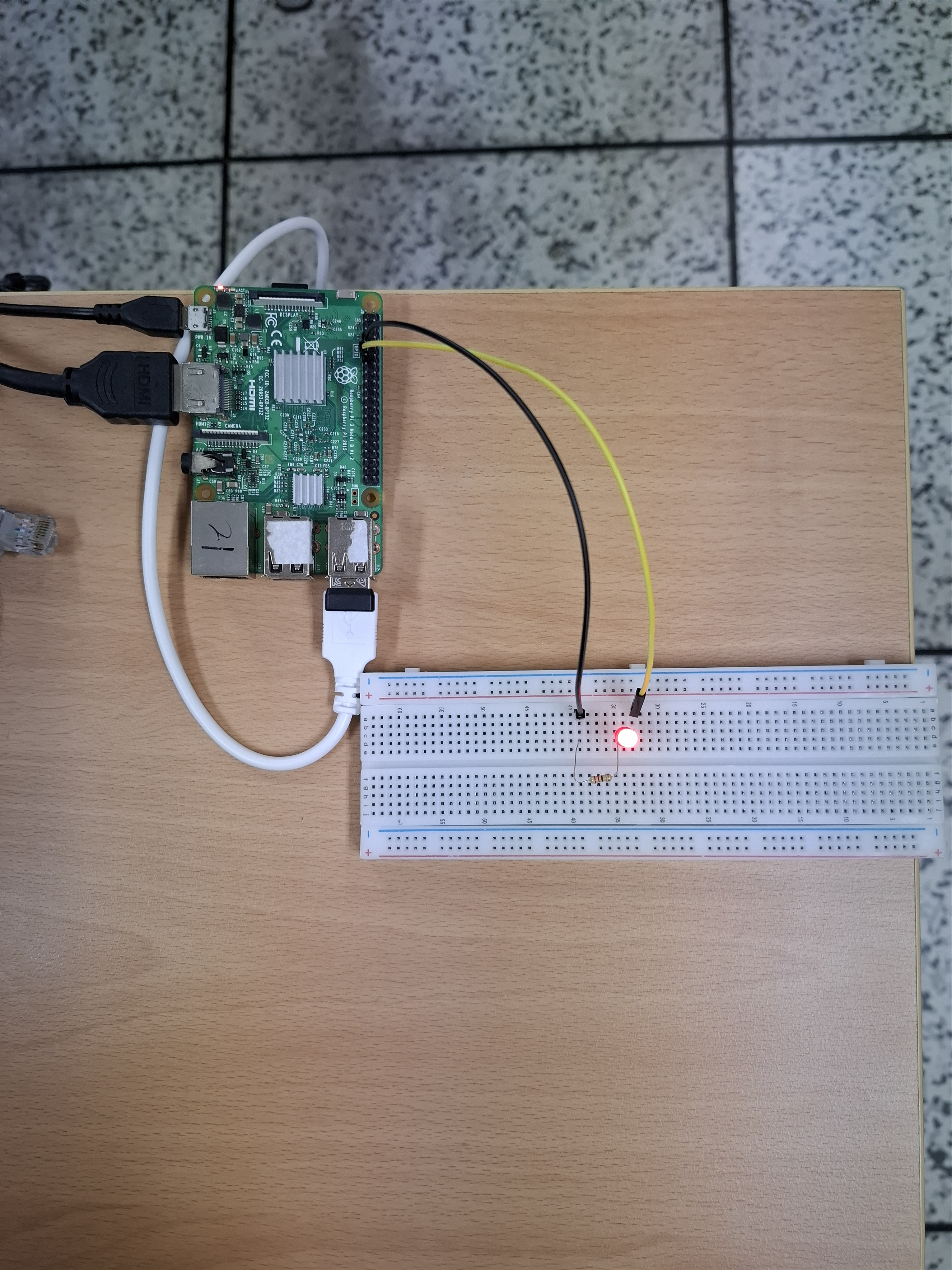 실제 LED를 GPIO 17번 물리핀 11번에 연결해 테스트한 이미지