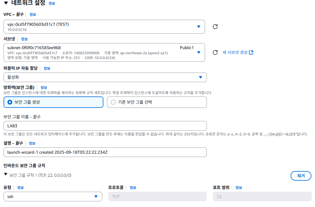인스턴스 만들고 -> 보안 그룹 생성