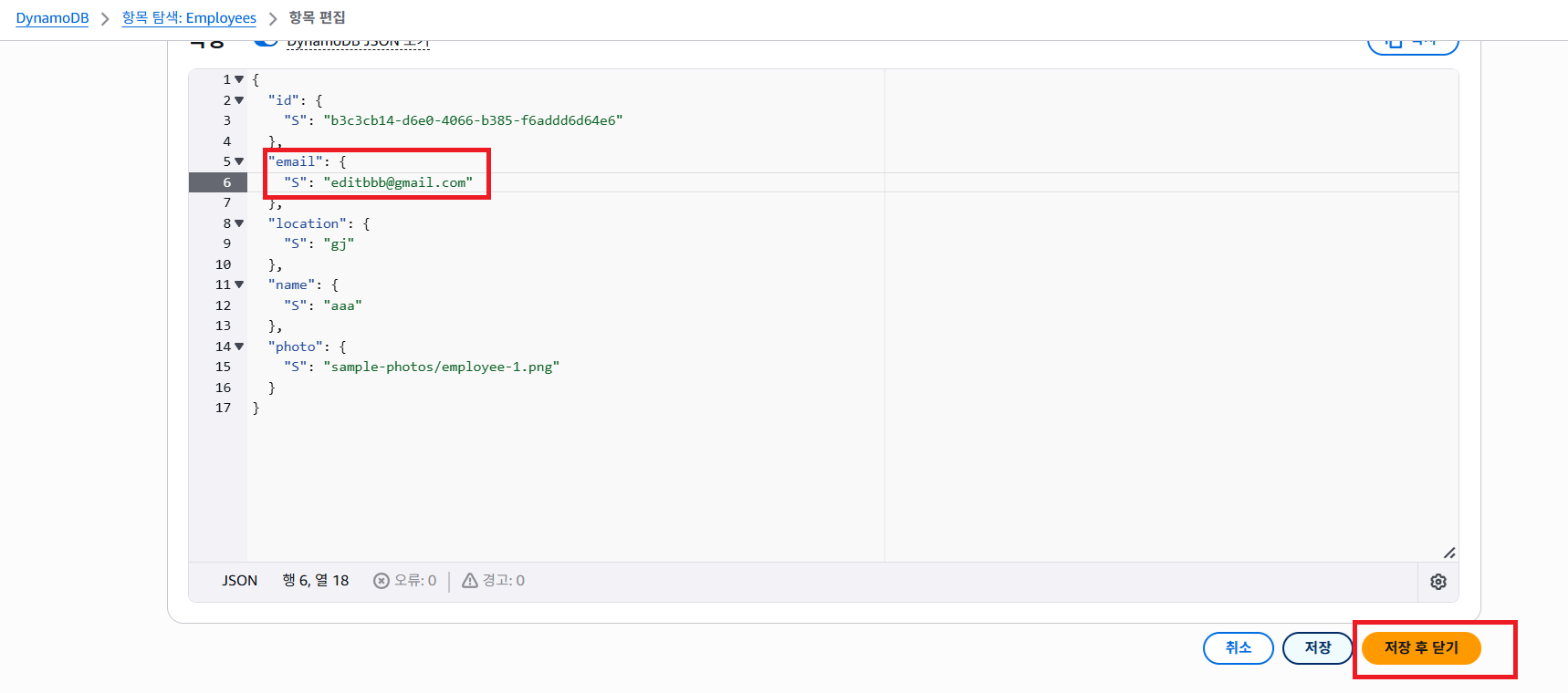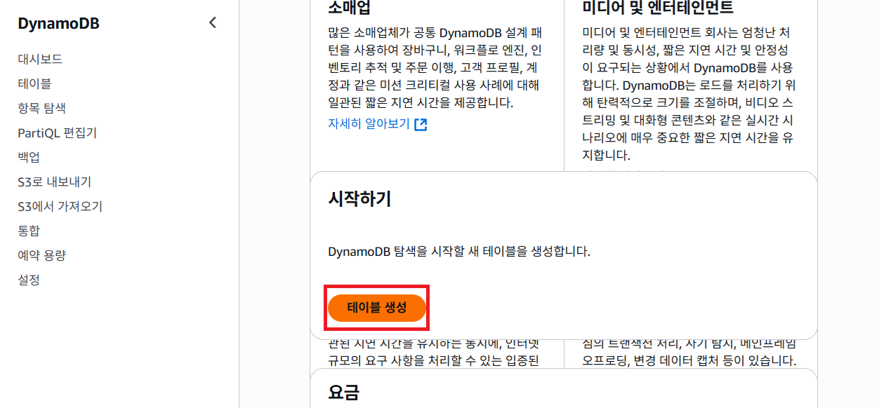 사이트가 열리고 DynamoDB를 찾을 수 없다고 알려줌 이어서 실습 진행
