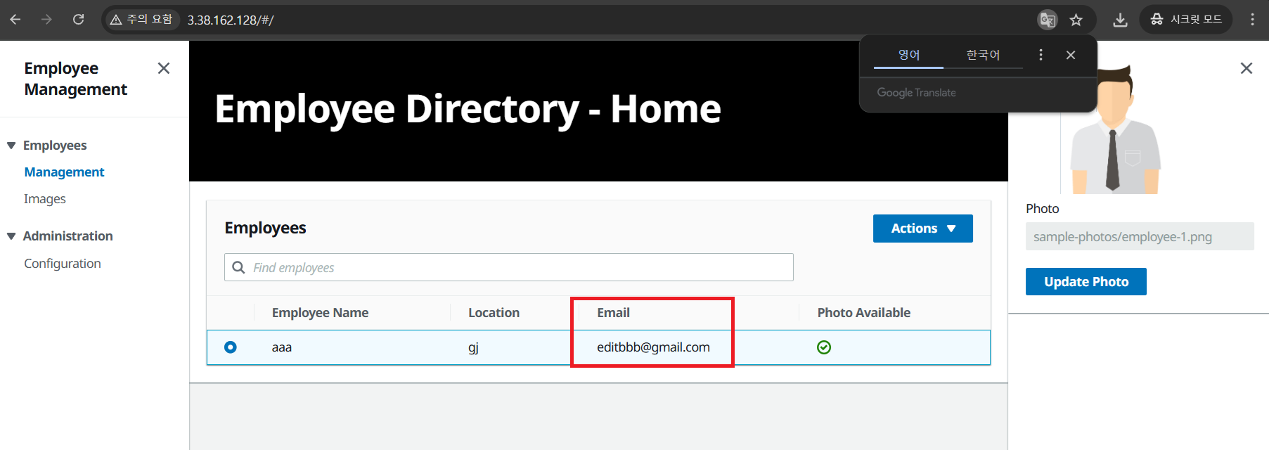 직접 데이터베이스에서 추가할 수 있고 웹페이지 내에서도 수정할 수 있다는 것을 확인했다면