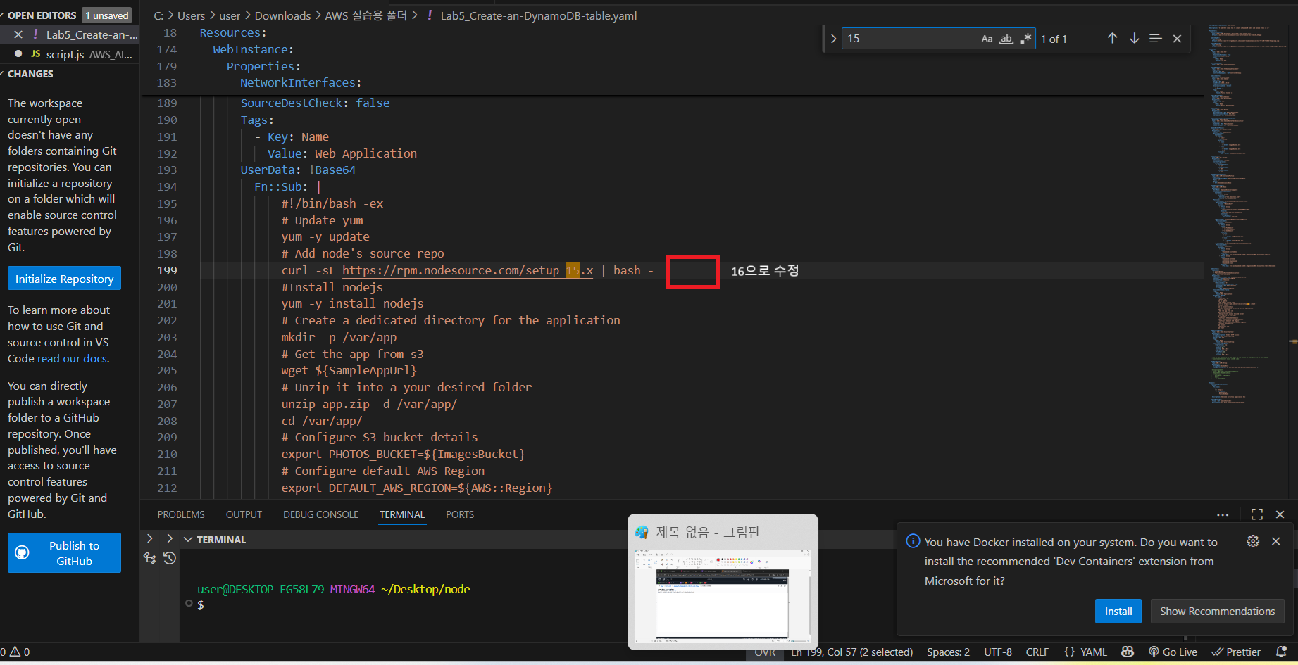 추가 : 15로 된 버전을 16으로 수정해야됨
