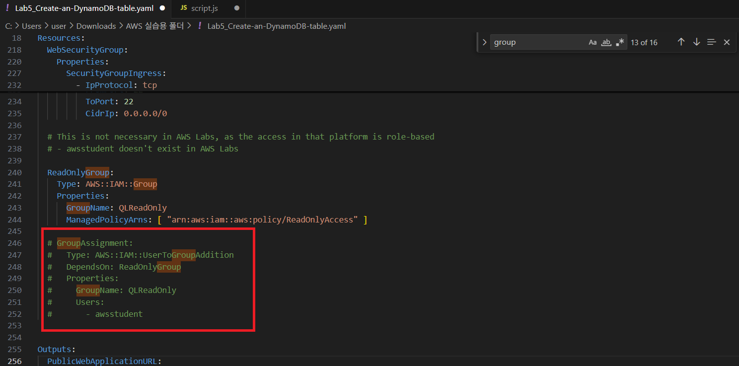 늘 하는 작업 수정안하면 저부분에서 오류 발생 수정 후 클라우드 포메이션 바람.