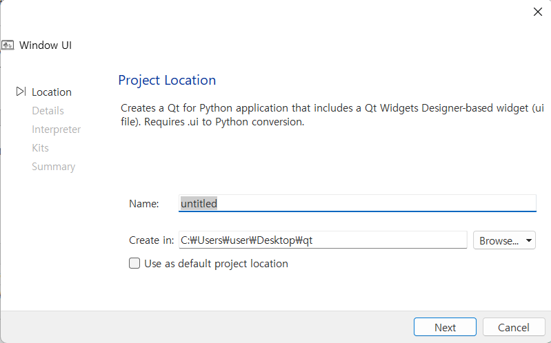 파일 경로 오류가 뜨면 lib에 설치된 pyside6 uic파일을 찾아보고 경로를 다시 지정해주고 실행한다.