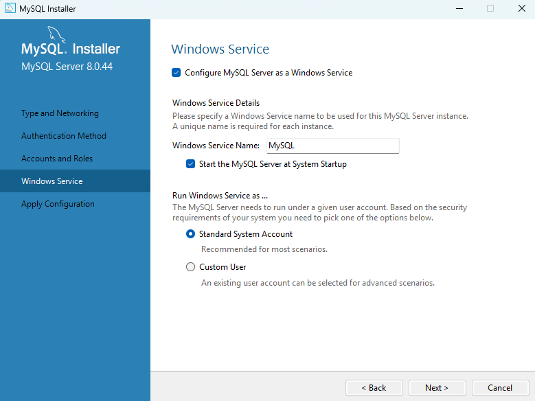 만약 이전에 설치한걸 지우다가 ! 표시가 뜨면서 next가 뜨지 않으면 작업관리자에서 mysql.exe 를 종료하면 계속 진행이 가능하다.